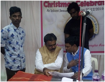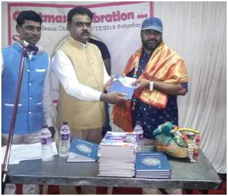 Karnataka Banglore had followship with about 1000 poor people-under the guidance ship of National Vice President Joseph Ravi and Antony Raj State President on 21st December 2019. People attended the meeting of Rashtriya Isai Mahasangh Regd and were distributed sarees, blankets & National leaders issued books to children.